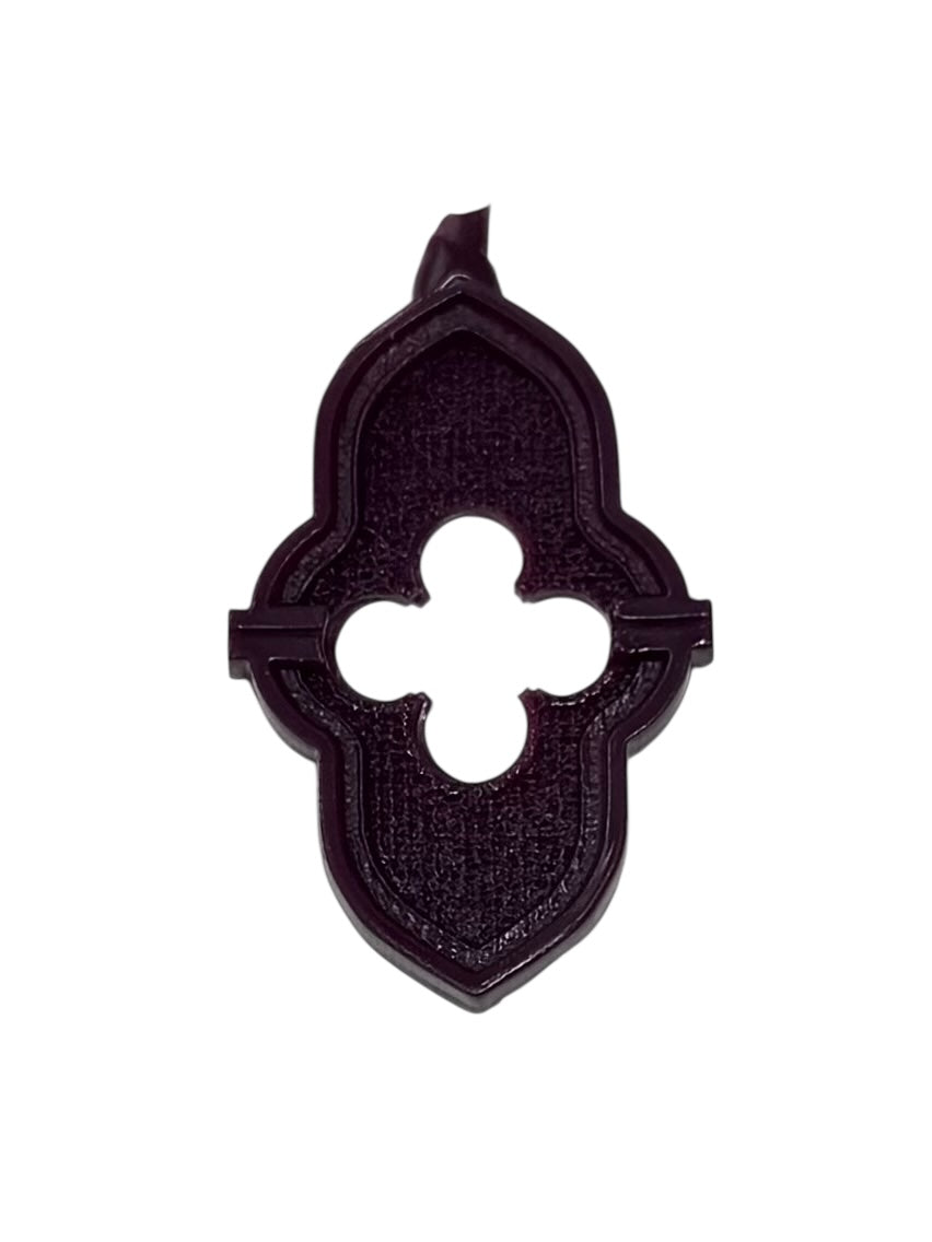 20” chain. A pentacle fashioned in the style of 16th century European architecture, shown in it’s pre-cast red wax form. For an idea of how a piece looks in red wax and then in it’s final form cast in sterling silver, see the last two images.