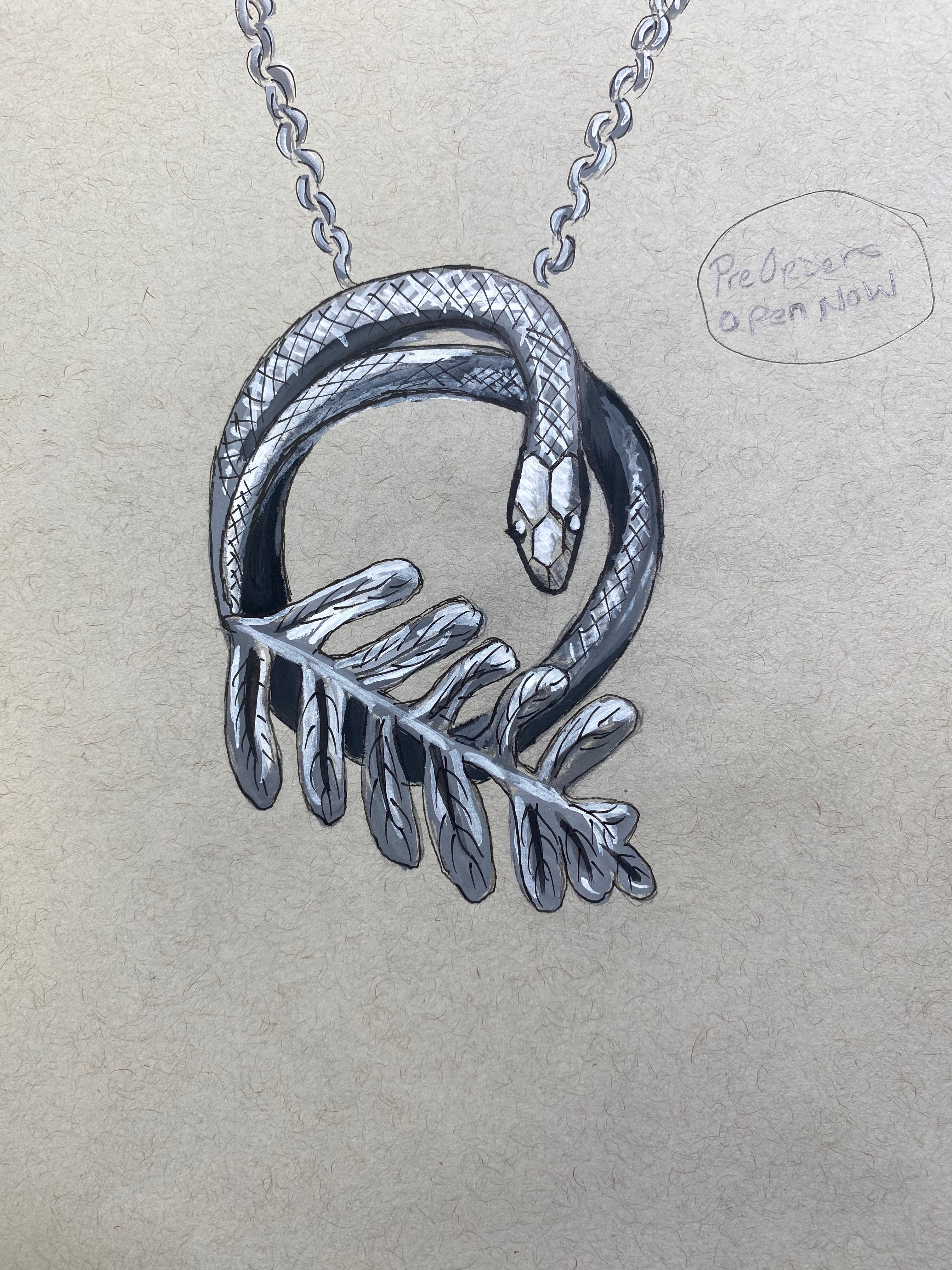 PRE ORDER- Ships by Christmas - Delicate Sterling Serpent and Fern Pendant