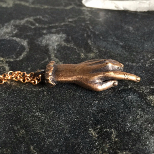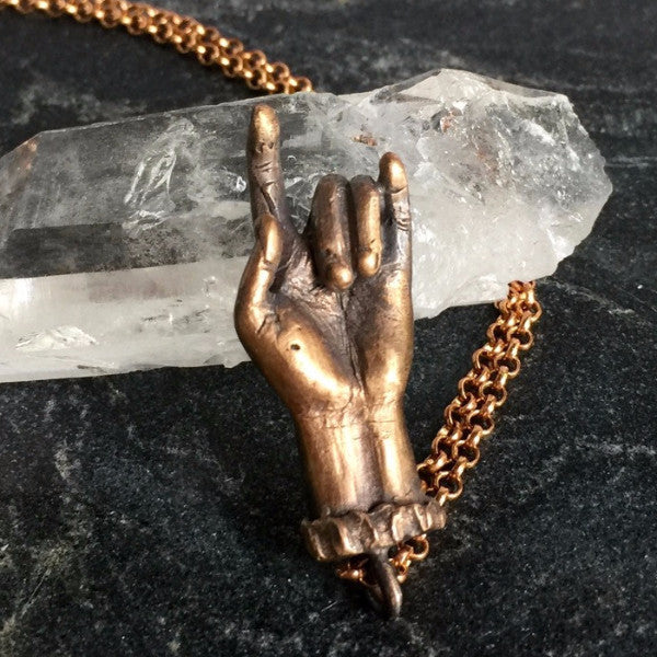- 1.5" Hand is solid bronze, patinaed and sealed for an ancient look